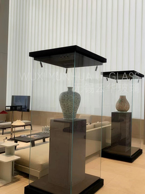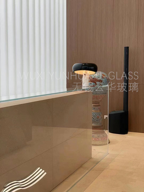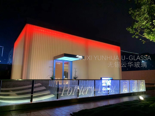 選用無(wú)錫云華K25*90*8超白香梨紋噴砂U型玻璃,最高約7.6米