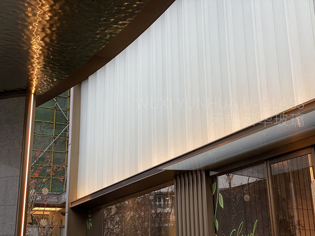 選用無(wú)錫云華K25*60*7超白波浪紋噴砂U型玻璃