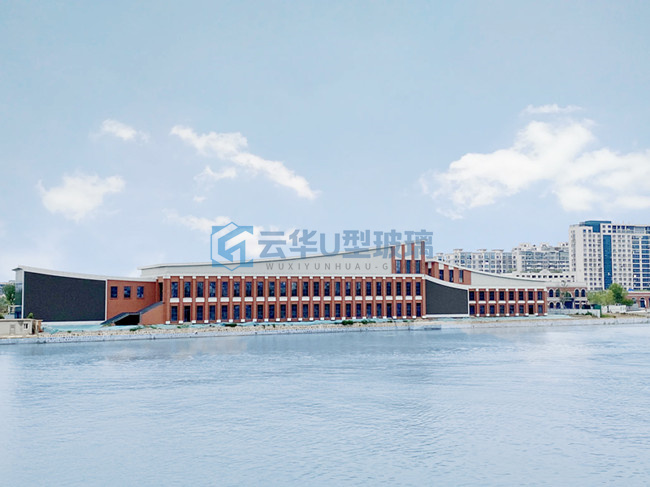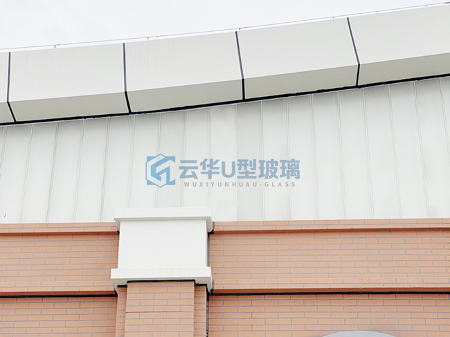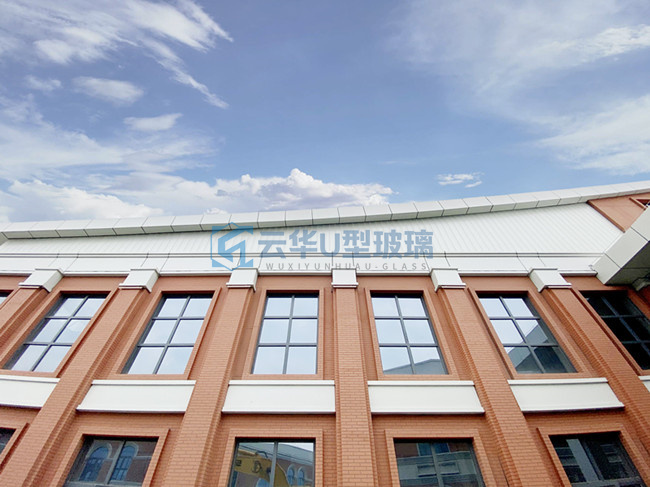選用無錫云華K25*90*8超白香梨紋噴砂U型玻璃