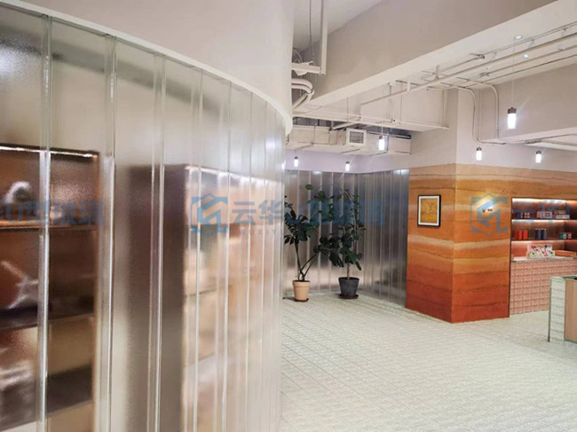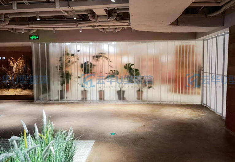 選用無錫云華K22*60*7超白香梨紋U型玻璃