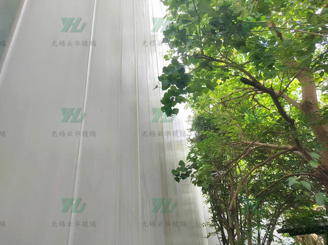 選用K25*90*8超白香梨紋噴砂U型玻璃
