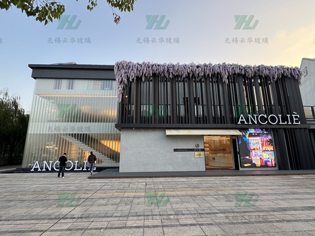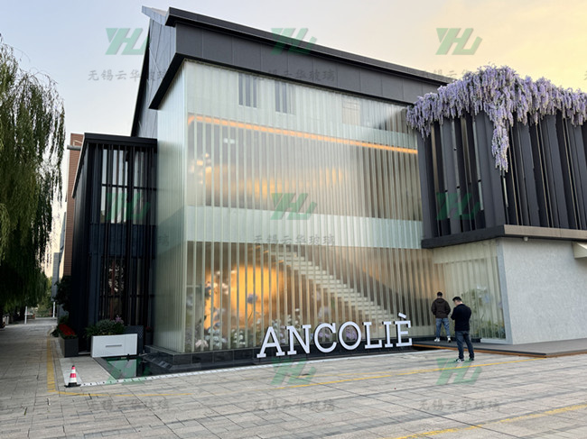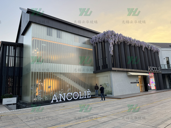 選用K25*90*8超白香梨紋U型玻璃,玻璃高度約9米