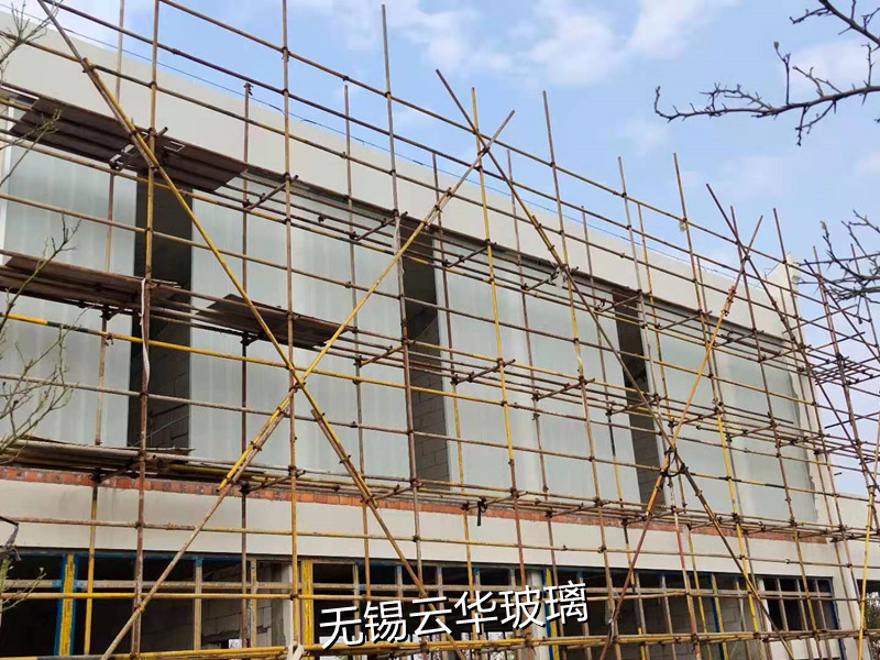 選用無錫云華K25-262*60*7超白香梨噴砂U型玻璃